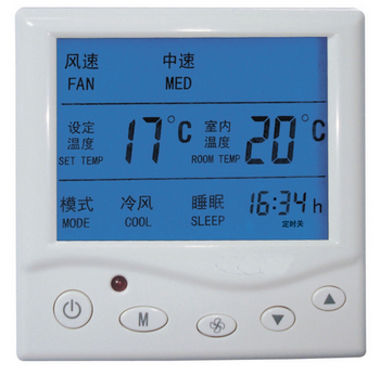 BO803中央空调液晶温控器适用于风机盘管、电动阀、电动风阀、电动风口及供热设备的温度控制。采用特大屏幕液晶显示,通过温控器内部的NTC(负温度系数)温度传感器,检测出室内温度,并实时地与用户所设定温度进行比较,自动调节冷暖气的进气量和开启或关闭管道电动阀,达到保持室内恒温的目的。